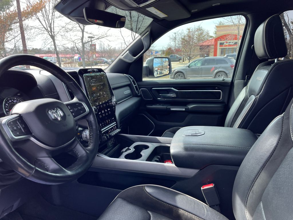 Beyond its exceptional on-road performance, this Ram 1500 is engineered to tackle the toughest off-road challenges. The Off-Road Group equips the vehicle with heavy-duty shock absorbers, an electronic-locking rear differential, and a suite of protective skid plates, ensuring you can confidently navigate even the most rugged terrain.
